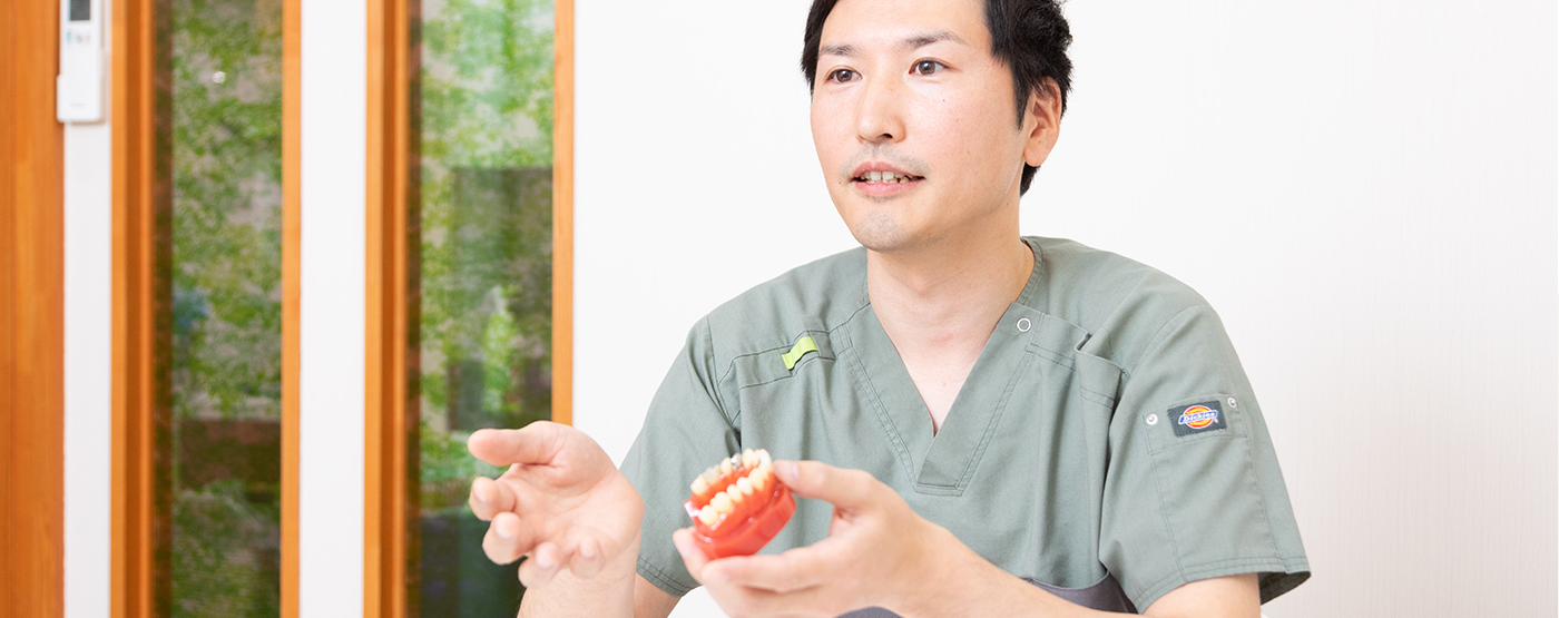 患者様とコミュニケーションを取りながら、噛むための機能改善だけでなく、審美性や耐久性も考え、安定して噛めるように治療内容を提案します。